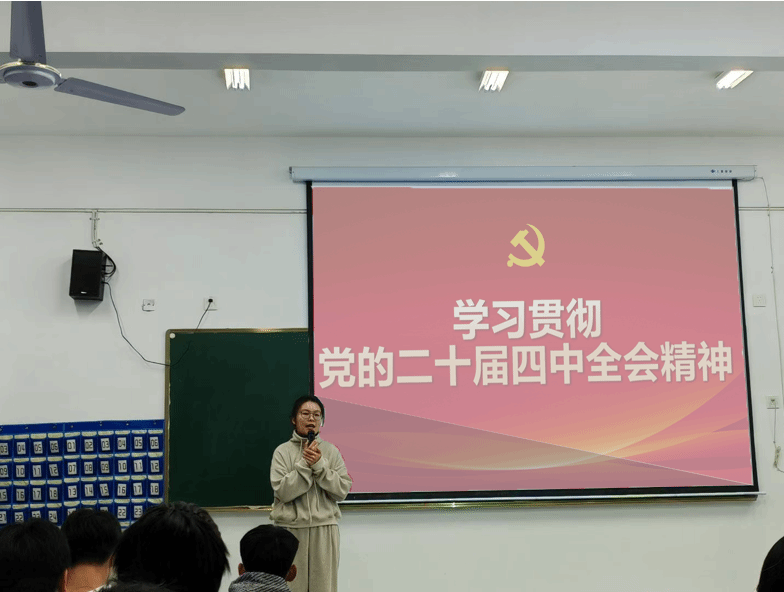 宣讲会上,付佳琪系统阐述了党的二十届四中全会的重大意义、《决定》的核心要义与新时代使命任务,并结合国家发展战略、行业趋势以及学校人才培养定位,深入解读了“当代青年如何将个人成长融入时代洪流”的深刻意义。